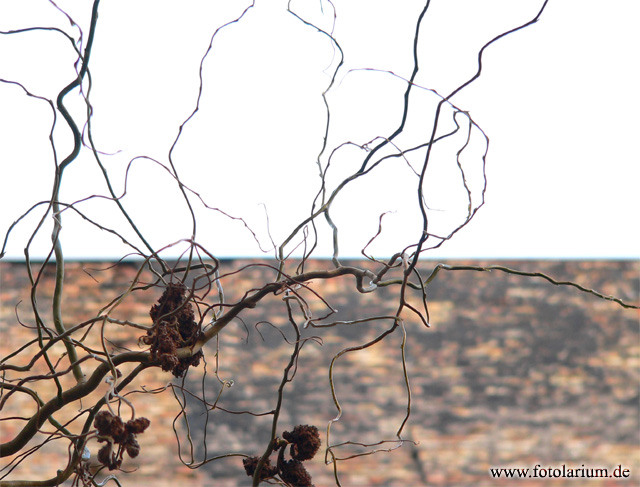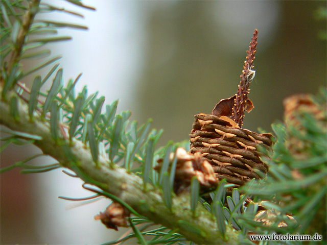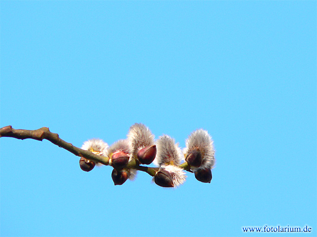 Lila Blüte im vertrockneten Laub Weidenkätzchen Lila Blüte und Knospengruppe Halber Tannenzapfen